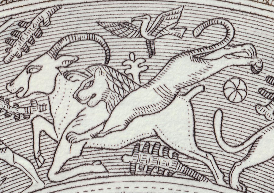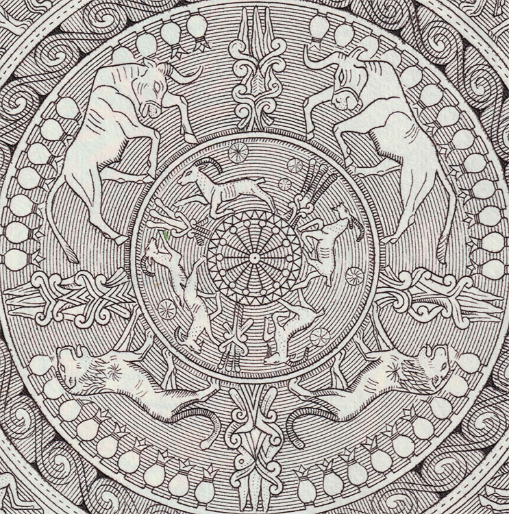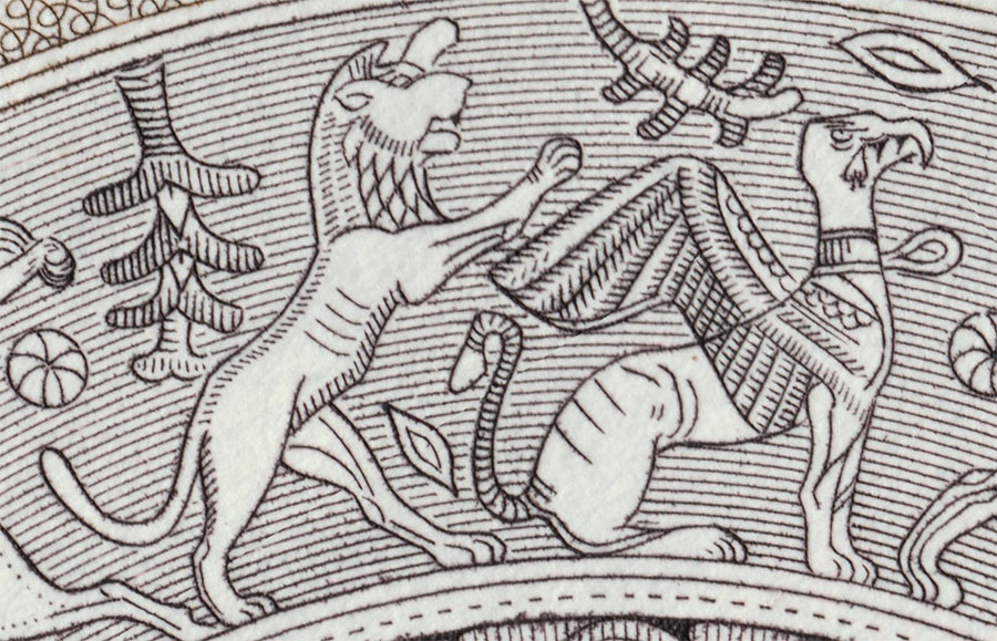 soit parceque les animaux y sont représentés sous forme de tableaux composés et qu'il n'y aurait que peu d'intérêt à les détailler. On y trouve également les armoiries, emblèmes ou blasons de nations de diverses confréries ou d'établissements bancaires.